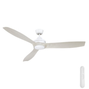 Mercator Lora DC Ceiling Fan with LED Light – 60″ (White with Light Timber-style Blades)