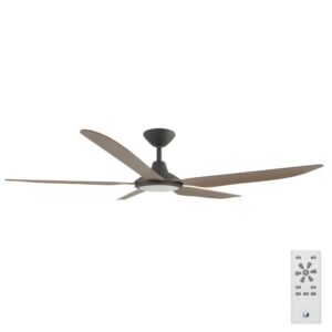 Calibo Storm DC Ceiling Fan with LED Light – 56″ (Black with Koa Blades)