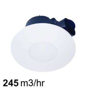 Ventair Airbus 250 Low Profile Exhaust Fan with LED Light – Round (White)
