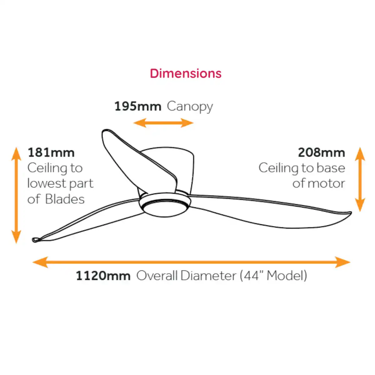| Ceiling to Lowest Point of Blade | 181mm (208mm to base of light) |