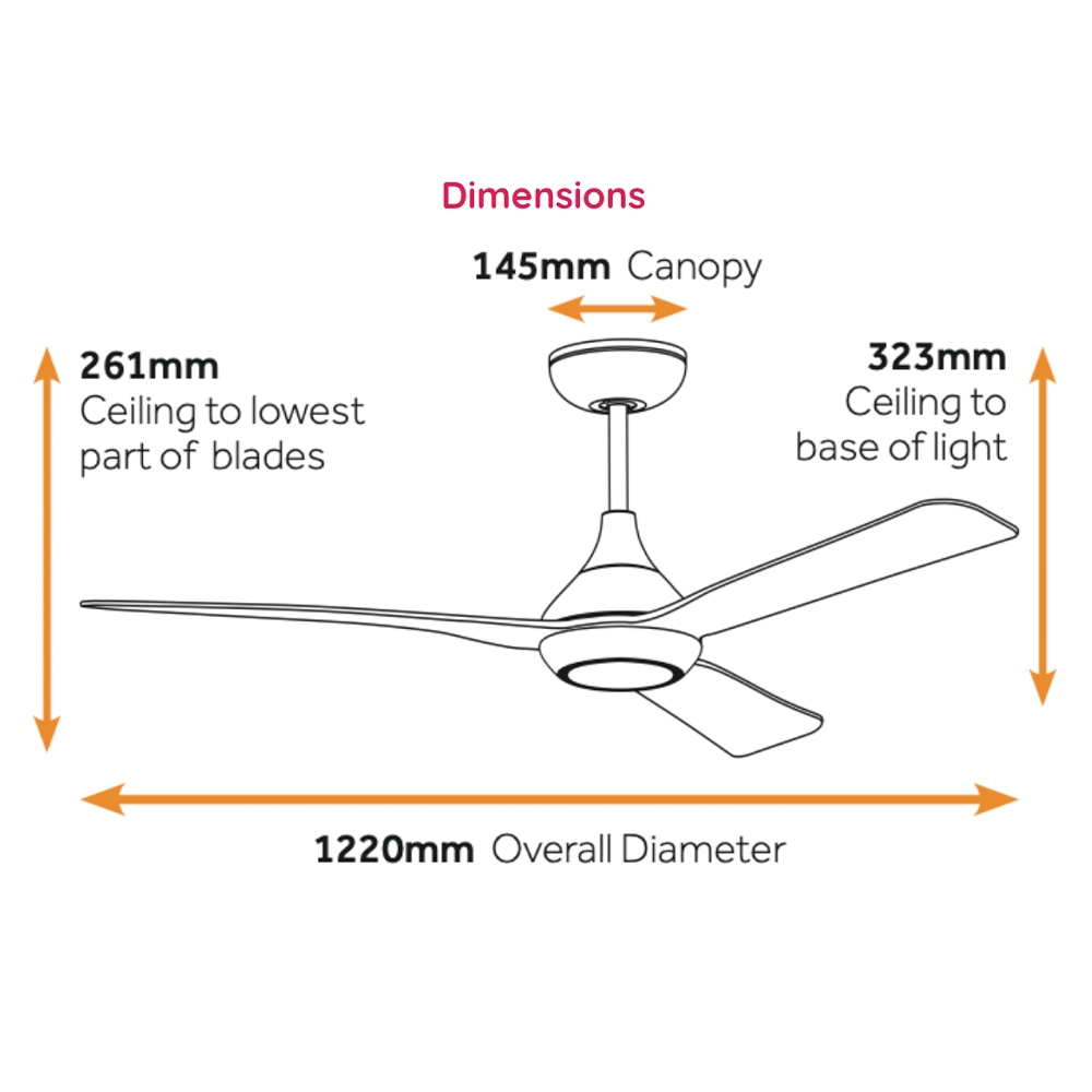 | Ceiling to Lowest Point of Blade | 261mm (323mm to base of light) |
