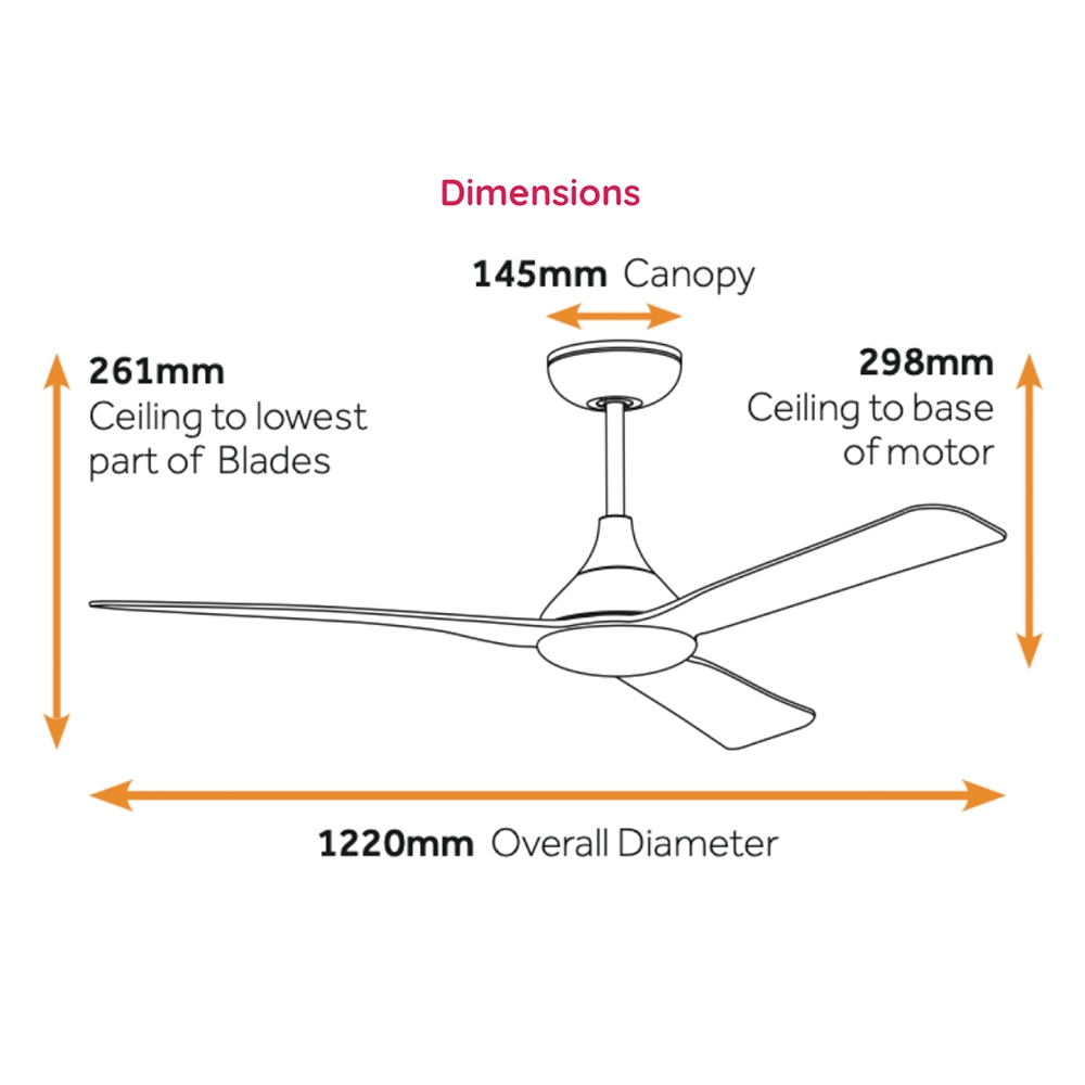 | Ceiling to Lowest Point of Blade | 261mm (298mm to base of motor) |