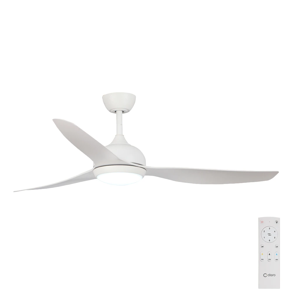 Claro Whisper DC Ceiling Fan with LED Light – 58 (White)