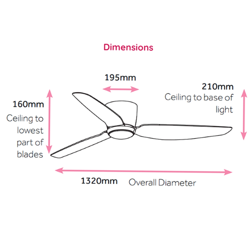 Ceiling to Lowest Point of Blade 160mm (210mm to base of light)