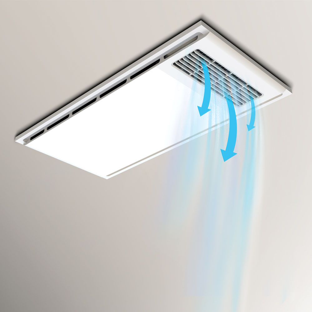 The Domus Tropix 4-in-1 bathroom heater pairs a slimline modern aesthetic with everyday practicality. Behind its clean, low-profile design, it delivers efficient heating, high-volume extraction, air circulation, and customisable tri-colour LED lighting all in one streamlined unit.