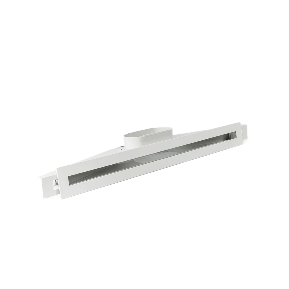 Expella Linear Slot Vent 150mm Duct (White) provides efficient air distribution through a slim, discreet opening designed for ceiling or wall installation. It seamlessly integrates with inline ventilation systems to maintain both airflow performance and a clean, modern aesthetic.