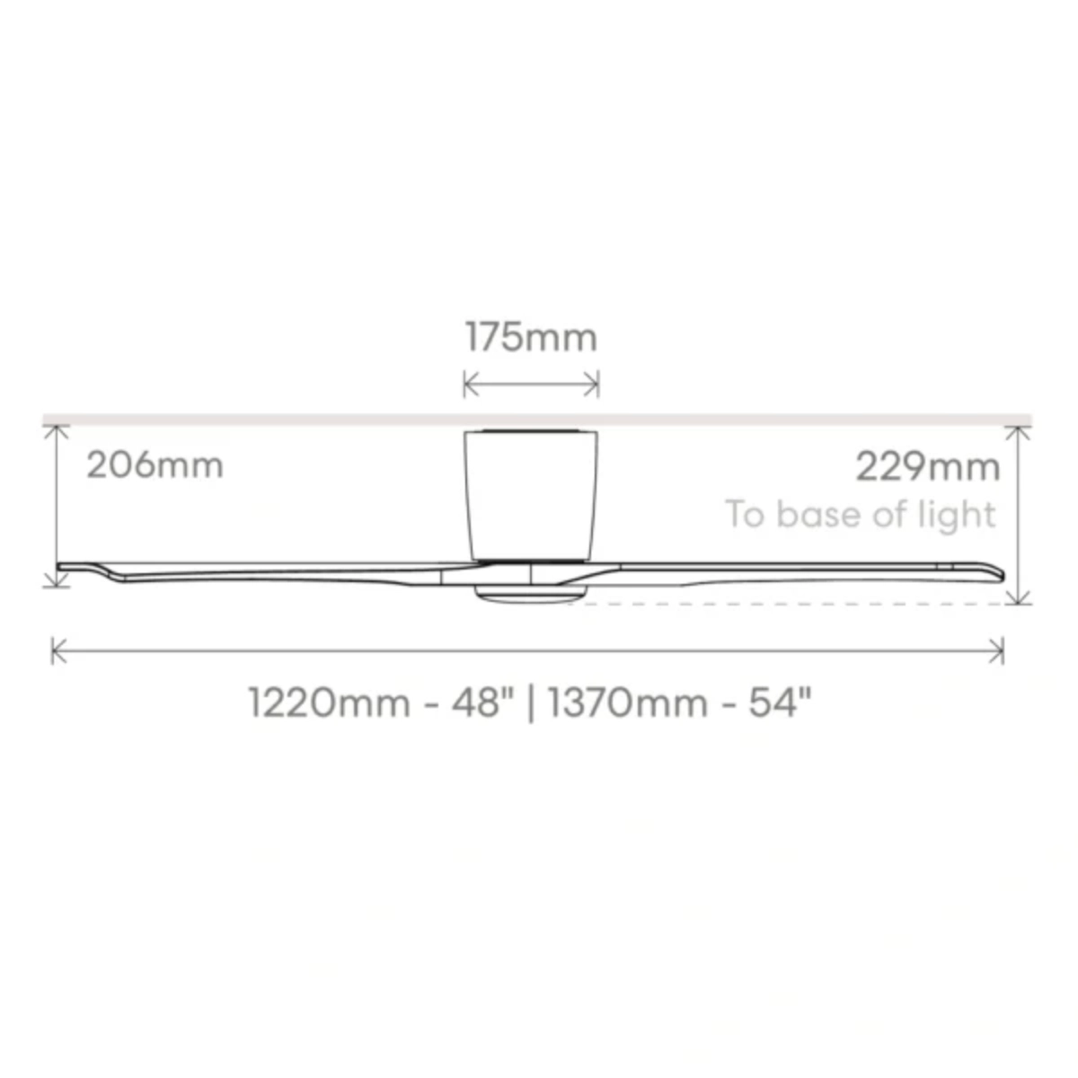 | Ceiling to Lowest Point of Blade | 206mm (229mm to base of light) |
