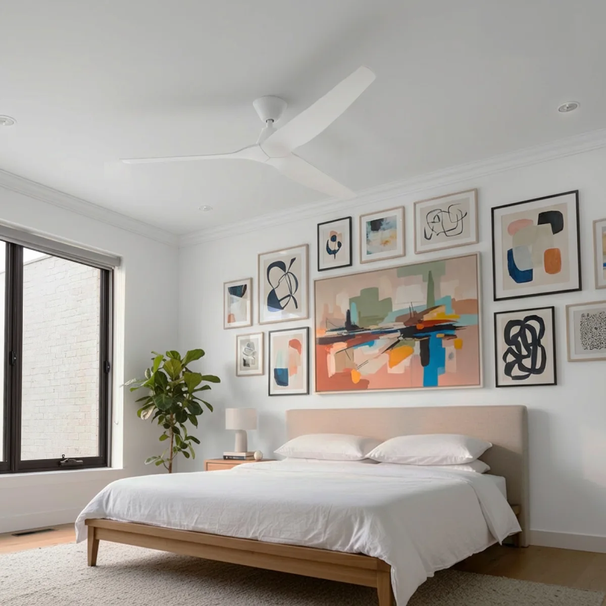 The Fanco Infinity-iD 60-inch DC Ceiling Fan in white combines modern architectural elegance with Scandinavian-inspired design, perfectly complementing minimalist interiors. Ideal for large bedrooms, living spaces, covered outdoor areas, and coastal locations, it’s designed with sleep-friendly quiet operation in mind. Its energy-efficient DC motor delivers powerful airflow of up to 14,958 m³/hr at maximum speed. With a six-speed remote control and reversible function, this fan seamlessly blends stylish design with practical performance for homes that value both comfort and aesthetic harmony.
