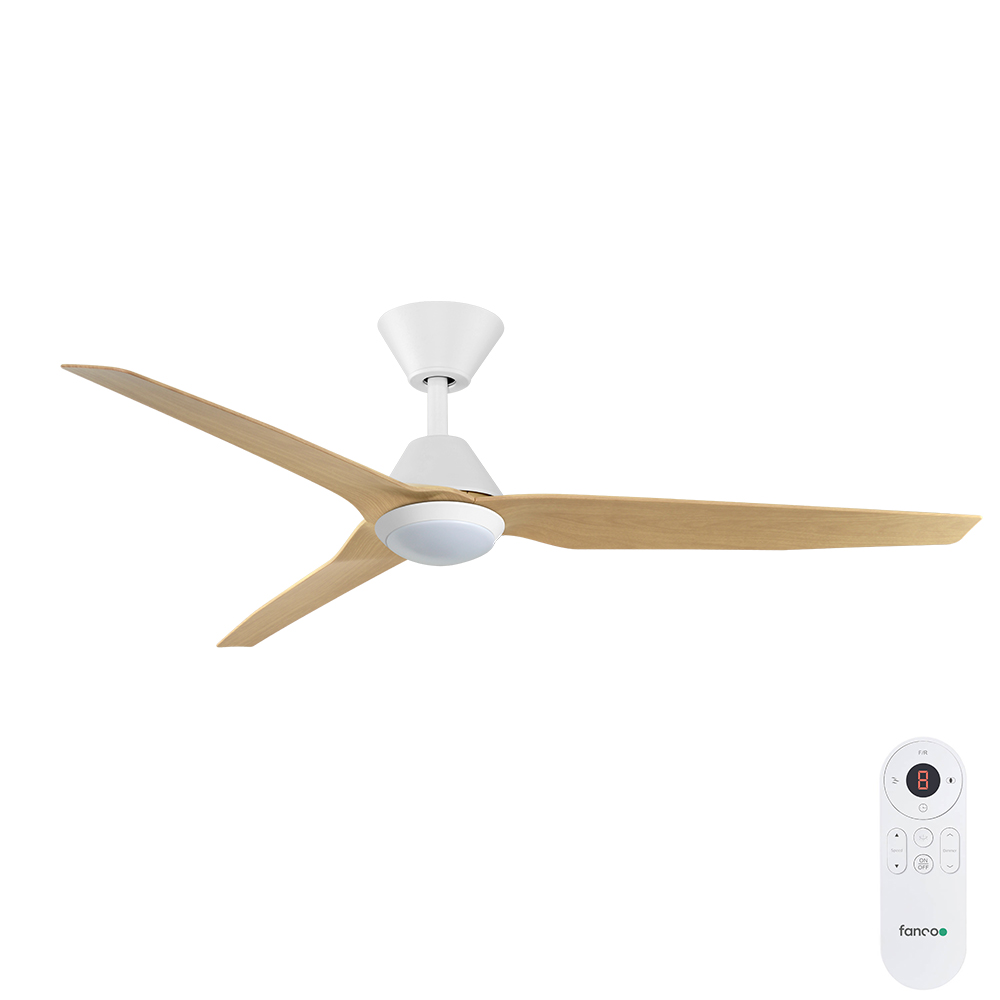 Infinity-iD DC Smart Ceiling Fan 54″ with Remote & CCT LED Light (White with Beechwood)