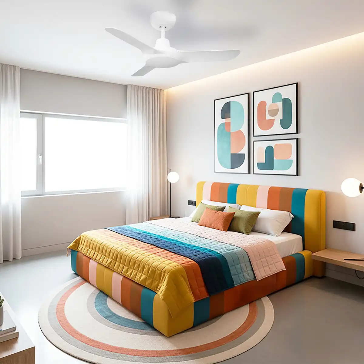 Equipped with a 17W DC motor, this ceiling fan provides reliable, energy-efficient performance, paired with a sleek, modern design ideal for compact spaces such as a kids’ bedroom.
